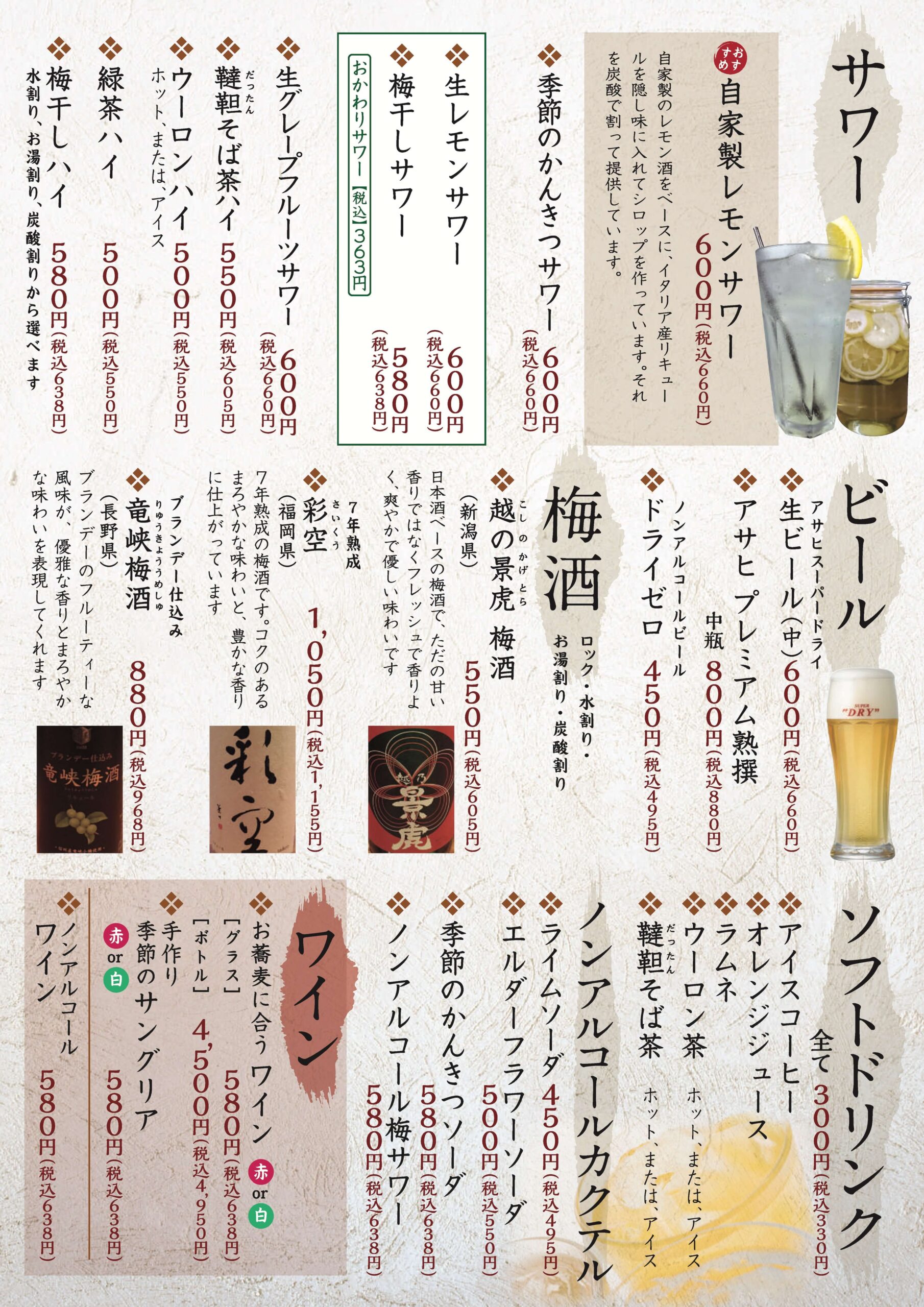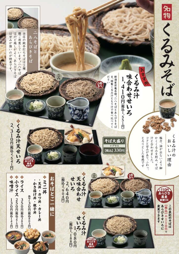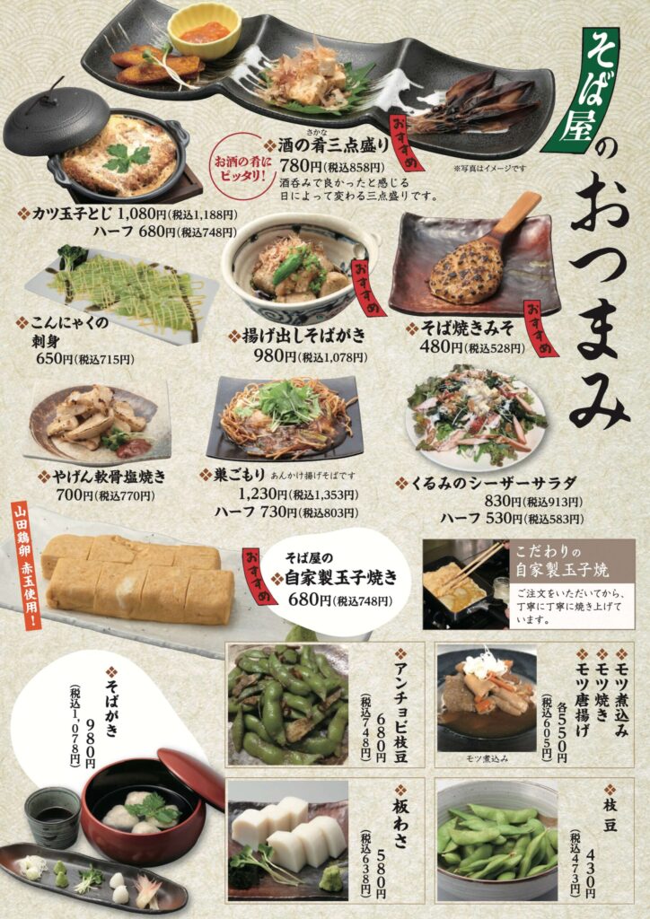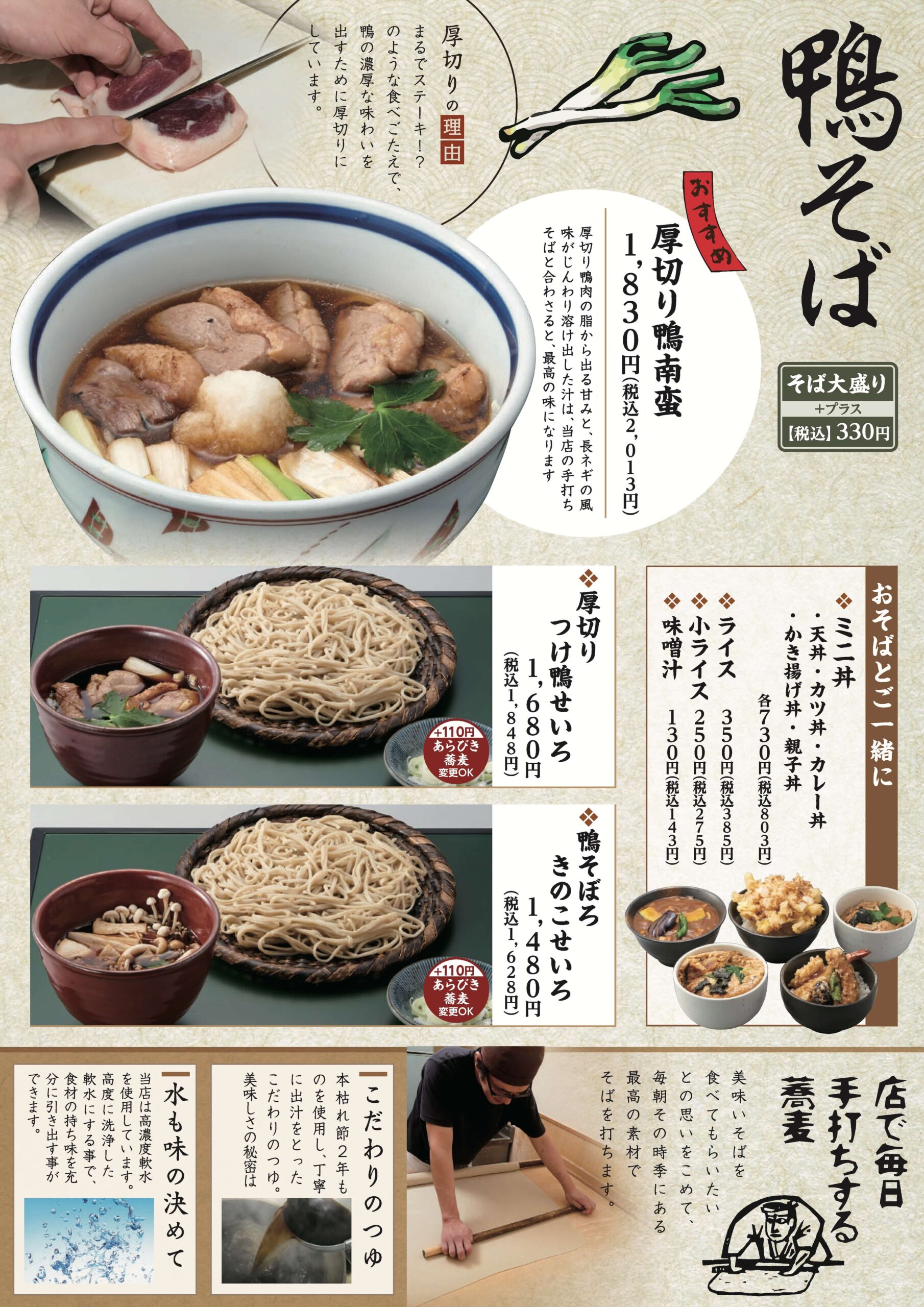 人気メニュー おろしカツ 酒の肴三点盛り 名物くるみそば 天せいろ 石坂舞茸天ぷら盛合せ 鴨南蛮 石坂舞茸天せいろ そば焼きみそ 自家製玉子焼き カツ丼 揚げ出しそばがき そばがき団子 ランチメニュー グランドメニュー ドリンクメニュー